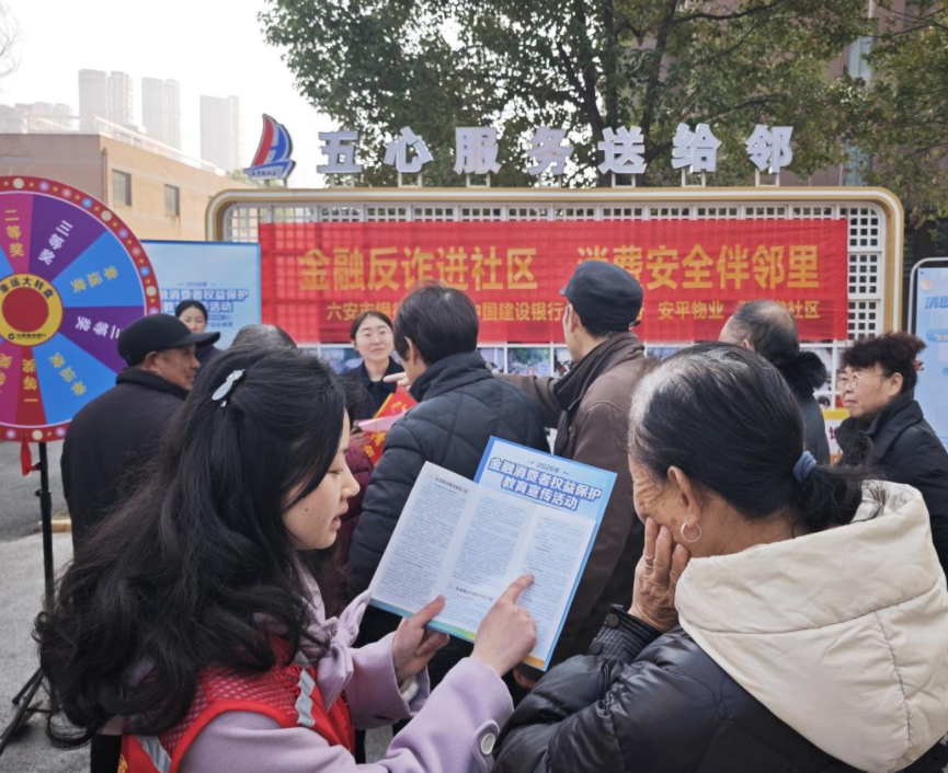 在“3 15”国际消费者权益日来临之际,为切实提升社区居民消费安全意识和权益保护能力,防范各类消费诈骗,3月13日上午,六安金安区五里墩社区联合六安市银行业协会、中国建设银行六安市分行、安平物业,在龙河苑小区举办“金融反诈进社区,消费安全伴邻里”活动,将消费诈骗防范宣教、消费者权益保护解读与便民服务、趣味互动相结合,紧扣居民日常消费中最关心的诈骗陷阱、维权途径等问题,切实筑牢消费者权益保护防线。