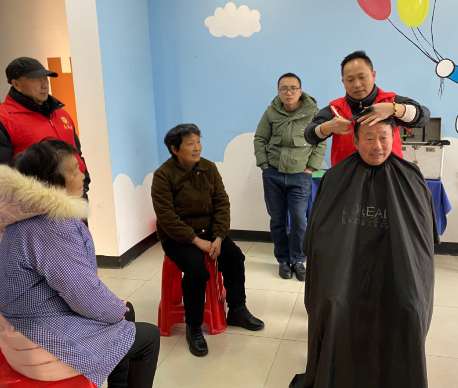 在小区“爱心理发屋”,志愿者理发师们热情接待每一位前来理发的老年人,一边娴熟地修剪头发,一边与老人们亲切交谈,询问他们的理发需求。剪刀翻飞间,原本凌乱的头发变得整齐利落,老人们脸上露出了满意的笑容。理发师志愿者用一把小小的剪刀,传递着浓浓的邻里温情,不仅解决了老年人出门理发不便的难题,更让老人们感受到了社区大家庭的关怀与温暖,收获了满满的幸福感。