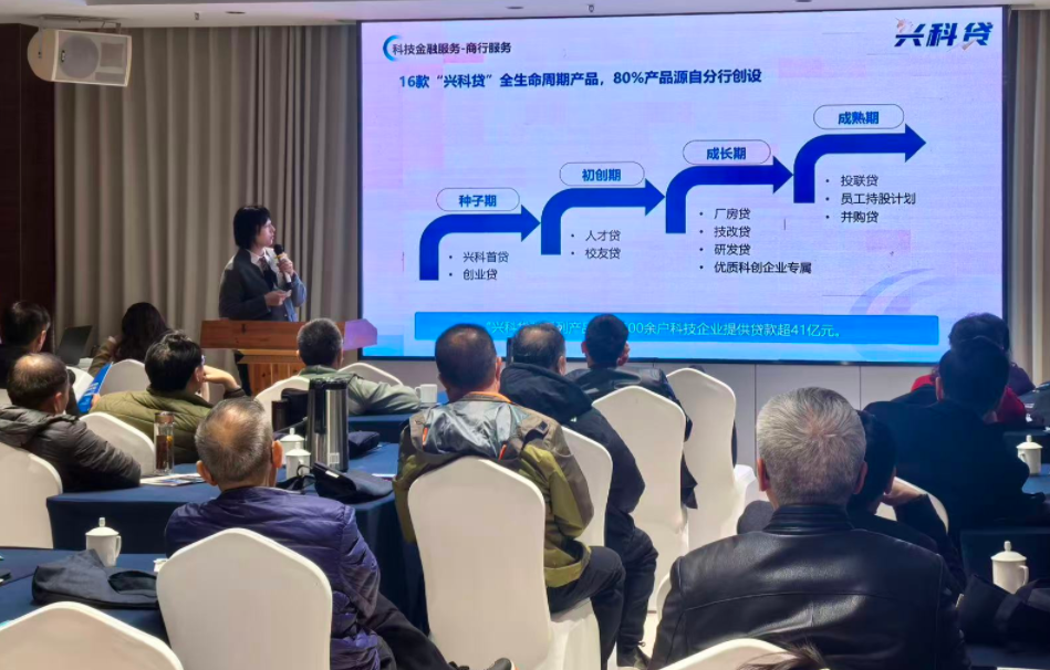 兴业银行蚌埠分行公司金融部总经理围绕企业金融服务重点,详细介绍兴业银行企业综合融资、流动资金管理、供应链金融、科创金融、跨境金融等核心业务,重点推介适配本地企业的厂房按揭、科创云贷、政采贷、票据池、外币理财、反向保理等特色产品与服务方案,精准回应企业在融资支持、资金增值、结算效率等方面的实际需求。