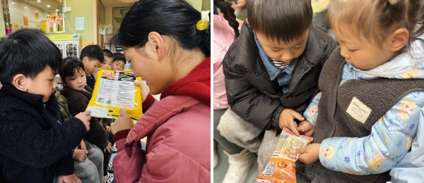 在实物观察实践环节,老师们准备了各类物品的正版包装袋,带领幼儿细致观察包装上的生产许可标志、绿色食品标志、生产日期、保质期等关键信息,教孩子们学会辨别安全合格的食品。同时,通过对比完好的正版包装与仿冒的破损包装,让幼儿通过看、摸、闻等感官体验,直观感知正品与假冒伪劣产品的差异,逐步建立对“假冒伪劣”的清晰认知。