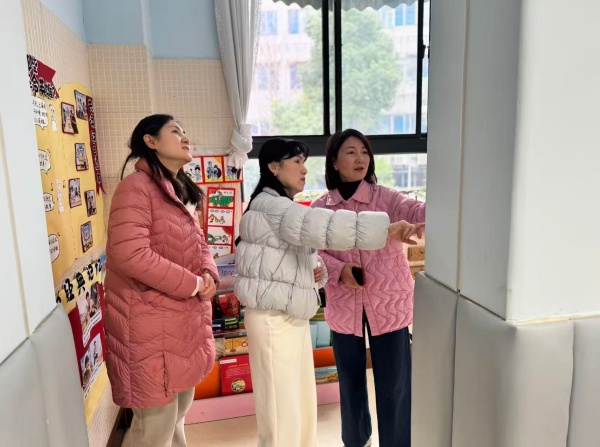 张秀兰督学在围绕班级环境创设与园所文化建设要求,对各班坏境、主题墙、区域活动布置等重点环节进行细致查看,重点关注环境创设的教育性、互动性与童趣性。