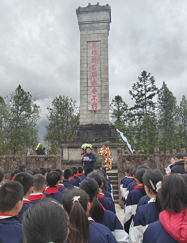 活动现场,党员教师率先垂范,与学生一同在烈士纪念碑前整齐列队、敬献花篮、肃立默哀,向革命先烈致以崇高敬意。在英烈事迹宣讲环节,党员教师代表详细讲述了“黄继光式” 英雄许家朋 1953 年朝鲜战场舍身堵枪眼的英勇事迹,党支部书记周声高现场勉励学生以先烈为榜样,立大志、勤学习、勇担当。党员教师还带领优秀学生代表自发擦拭烈士墓碑,以实际行动缅怀英烈,让师生在沉浸式实践中感悟共产党人敢于斗争、不怕牺牲的精神风范。