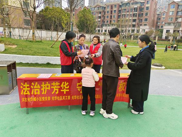 春风送暖,芳华绽放。为进一步维护妇女合法权益、提升妇女法治意识与维权能力,2026年3月26日,六安三里桥街道光华社区新时代文明实践站联合光华社区妇联开展“法治护芳华 守护‘她’权益”主题普法宣传活动,以精准普法守护巾帼权益,以法治服务传递暖心关怀。