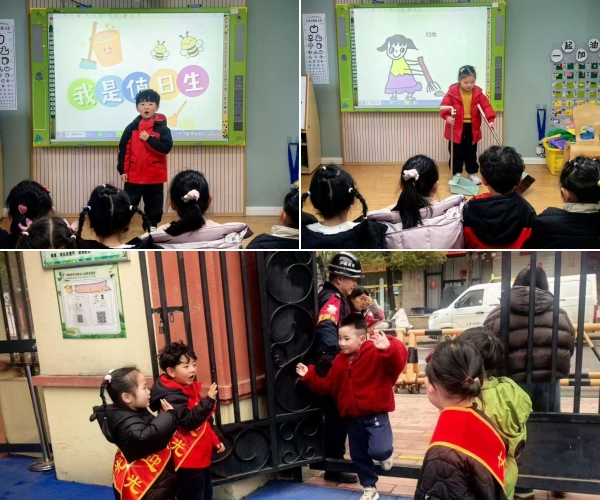 活动尾声,孩子们自信地站上讲台,大方分享自己的劳动故事与值日心得,把劳动中的收获与喜悦传递给身边同伴。同时,大家还走出班级,化身小小文明引导员,以礼貌、热情的姿态迎接小伙伴与家长,将责任与担当从班级延伸至整个校园,充分展现出中班幼儿积极向上、乐于服务、勇于担当的良好风貌。