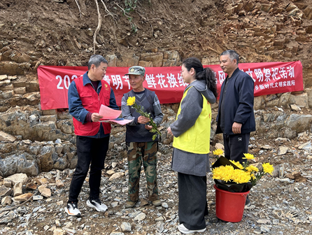 除了现场兑换,党员干部和志愿者们还兵分多路,深入周边村组、茶园和林区路口,向群众发放《文明祭祀倡议书》和森林防火宣传单页,面对面讲解传统焚烧祭祀方式对环境的污染以及可能引发的火灾风险,倡导大家采用鲜花祭祀、网上祭祀、家庭追思等现代文明方式缅怀先人。活动当天,累计发放鲜花70余支,发放文明祭祀宣传页200余份,兑换、劝阻携带纸钱香烛的行为20余起。