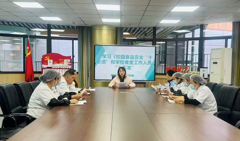 全体食堂工作人员人员集中学习了《校园食品安全“十必须”》《学校食堂工作人员“十不准”》文件精神,明确食品安全规范与行为准则,要求大家严格执行、严守安全底线,并围绕日常操作、食材储存、营养搭配等梳理流程、细化责任,确保各项要求落到实处。