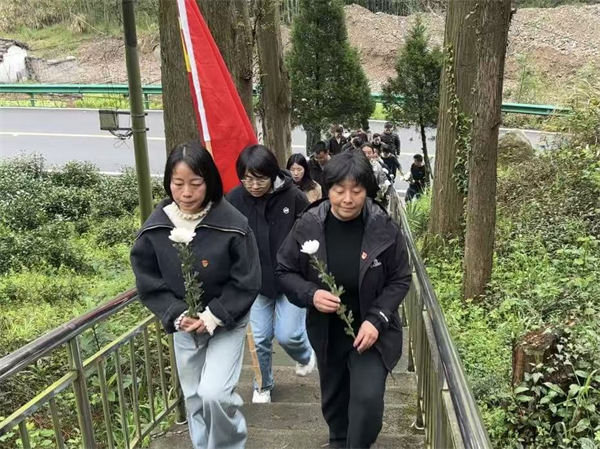 随后进行第二项议程,敬献鲜花。全体党员干部依次缓步向前,郑重地将手中的鲜花敬献于烈士纪念碑前,驻足瞻仰纪念碑碑文,追思革命先烈舍生取义、浴血奋战的峥嵘岁月,感悟先辈们坚如磐石的理想信念和无私奉献的崇高品格,用朴素的方式寄托对先烈的缅怀之情。