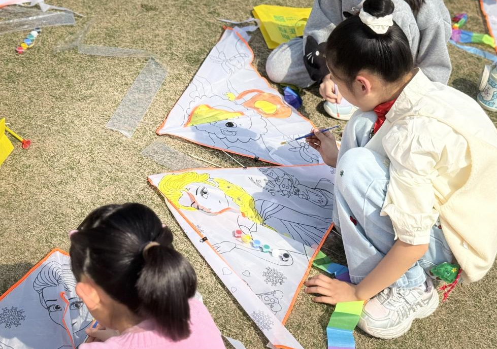 三月的徽园广场,春风和煦,阳光轻柔。孩子们趴在画布上,小手握着五彩画笔,在素白的纸鸢上描摹着心中的图案——有的画上展翅的飞鸟,有的写下对远方亲人的祝福。一旁的家长或是俯身指导,或是轻声讲述着清明节的习俗,亲子间的温馨互动,让春日的气息里多了一份脉脉温情。一只只纸鸢在孩子们手中渐渐变得鲜活起来,它们将载着春风和童真的思念,飞向辽阔的天空。