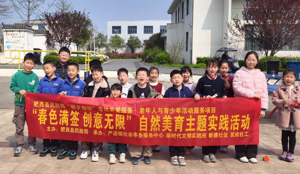 春风送暖,万物复苏。为丰富青少年课余文化生活,培养动手实践能力与审美创造力,让孩子们在自然中感知美好、定格春日诗意,4月1日,肥西县民政局联合严店镇社会事务服务中心、新时代文明实践所、新建社区及民欣社工,在严店镇综合文化站户外广场开展“春色满签 创意无限”自然美育主题实践活动,以手工为媒,带领青少年沉浸式感受春日之美。