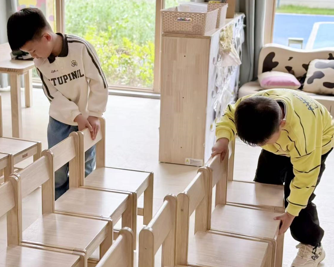 中班幼儿化身勤劳能干的“班级大扫除小卫士”。活动中,孩子们分工协作、干劲十足,有的认真擦拭玩具,有的细心整理图书,还有的有序摆放小椅子,忙得不亦乐乎。在共同美化班级环境的过程中,孩子们不仅锻炼了生活自理能力,更在合作劳动中体会到保持环境整洁的快乐与责任。