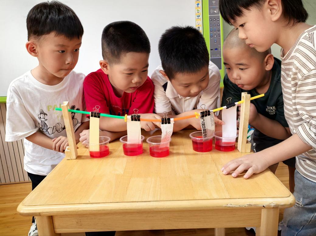 发现问题后,我们组织集体探究活动,让孩子们分组动手实验、反复尝试。孩子们通过亲身体验,发现了纸张的不同:有的纸吸水能力强,墨汁滴上去会快速晕染;有的纸不吸水,能牢牢锁住墨色、保持线条清晰。