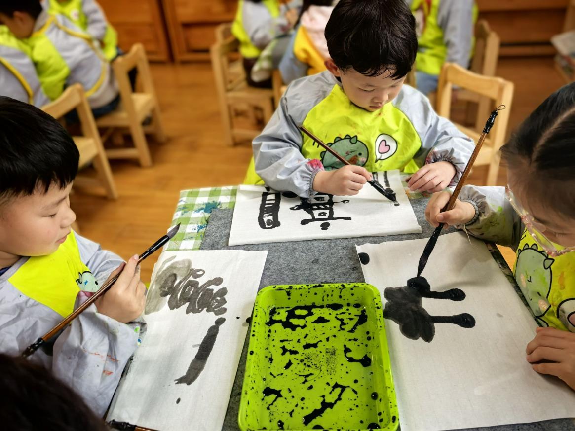 教师以静心倾听、温柔陪伴为旨,适时俯身支持,放手让孩童探索试错,让孩子们在笔墨晕染间,沉浸式感受中华传统文化的温润之美。笔墨无言,童心有声,一纸墨韵,一笔童真,都化作童年里最温润珍贵的时光,伴童心向阳生长。