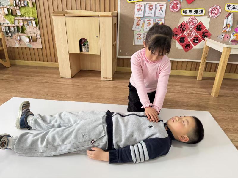 图为小朋友操练心肺复苏。