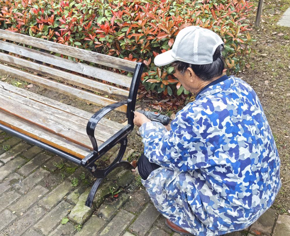 以设施修缮为抓手,筑牢便民服务“暖心阵地”。该社区始终把公共设施维护作为为民服务的基础工程,针对辖区内休闲座椅松动、围栏破损等居民反映集中的问题,组织专业维修人员开展全方位排查整治。工作人员蹲在步道旁,手持电钻仔细拧紧每一颗螺丝,加固摇晃的椅架,修复破损的部件;在路边逐一更换、加固小区围栏,让歪斜的栏栅重新挺立。这些看似微小的修缮,不仅消除了安全隐患,更让每一处公共设施都成为服务居民的暖心阵地,切实保障居民出行休憩的安全与舒适。