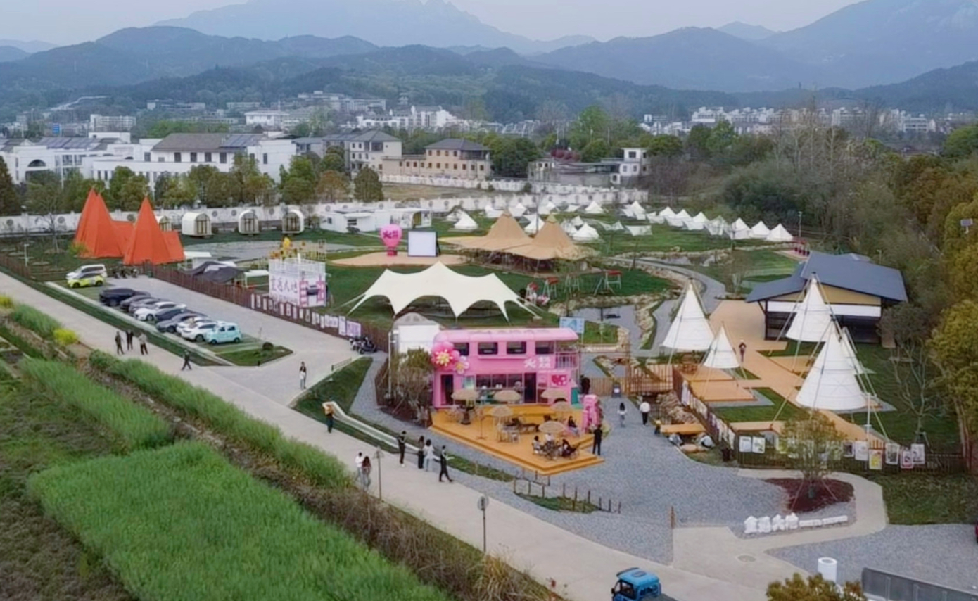 潜山市“重返大地”青年共建社区位于痘姆乡吴塘村,地处天柱山5A级景区与潜水河国家湿地公园交汇处,距高速出口仅500米。该地块原为2013年征收后长期闲置的土地,在中国城市规划设计研究院驻点团队策划推动下,创新探索“国有资本投资、专业团队运营、在地青年共创、村集体与村民共享”的四方联合共营模式,成功打造为集露营体验、青年创业、文创孵化于一体的乡村旅游联合体和青年创业集合地。