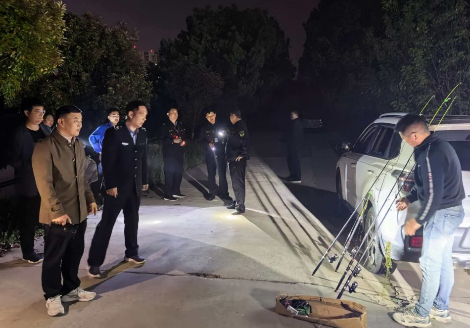 淠河干渠作为重要的饮用水保护水源地,其生态环境直接关系辖区群众饮水安全与流域生态平衡。夜间是非法捕捞行为的高发时段,执法人员聚焦淠河干渠重点河段、隐蔽水域,采取“定点排查+沿线巡查”相结合的方式,重点对河道沿岸违规垂钓、非法布设渔具等行为进行全面排查。巡查过程中,执法人员亮明身份、规范执法,对现场发现的违规垂钓人员进行耐心劝导,详细讲解禁渔期政策规定、水生生物保护意义及相关法律法规后果,引导群众自觉遵守禁渔要求;对违规渔具依法予以收缴并给予行政罚款。