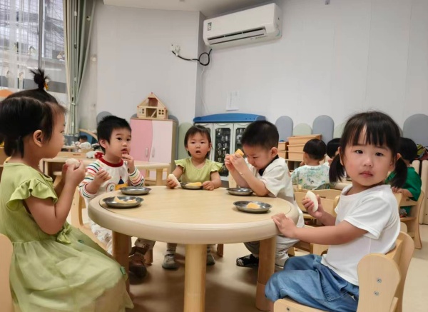 新鲜香甜的时令水果上桌,萌娃们有序洗手、安静品尝,补充满满维生素,养成不挑食、细嚼慢咽的好习惯,一口一口吃得超满足,元气满满。