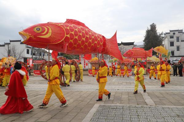 在文旅融合的浪潮中,仙源吉庆鱼灯正“游”向更广阔的舞台。今年以来,吉庆鱼灯强势登陆央视《新闻联播》《新闻直播间》《央视元宵晚会》等国家级平台,相关新闻稿件被央广网、安徽日报、黄山日报等省市级主流媒体采用刊发26篇,本土民俗文化品牌影响力持续攀升。与此同时,仙源镇积极推进非遗场景革命,推动鱼灯游进民宿大堂、点亮商超中庭、纳入研学固定体验项目,不断打破传统展演的边界。据统计,春节期间,全镇共开展鱼灯非遗活动14场,参加区级新春展演8场,累计吸引游客5000余人次。