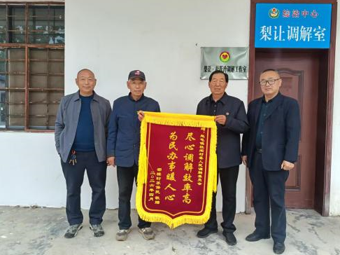 4月21日,砀山县赵屯镇杜阁村村民苏保民专程来到村“梨让调解室”,将一面印有“尽心调解效率高,为民办事暖人心”的锦旗送到调解员手中,感谢调解室高效化解了困扰已久的邻里宅基地纠纷。这面鲜红的锦旗,不仅是群众对杜阁村调解工作的认可,更是对赵屯镇“梨让调解”特色品牌治理成效的生动印证。
