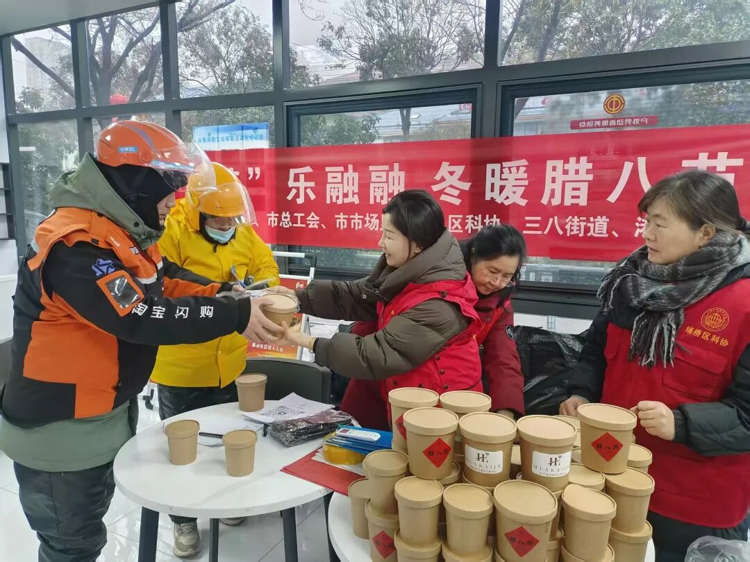 1月26日,正值农历腊八节,宿州埇桥区三八街道港利社区在云集商业圈工会驿站内举办了一场温馨的腊八节活动,专门为奔波在街头的快递员、外卖骑手、网约车司机等新就业形态劳动者送上节日的问候与社区的关怀。