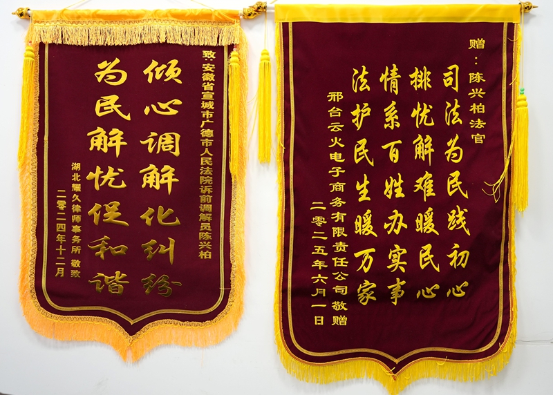专业为基,公心为魂。每一次调解,都要牢记“屁股端端地坐在老百姓这一面”的初心,以法律为尺、以事实为据,不偏不倚、秉公处事,才能不负群众的信任与期盼。在河北邢台某商务公司诉余某货款纠纷调解中,我对“公心”二字有了更深刻的体悟。余某拖欠公司一万余元货款,经多次催要无果后,公司诉至法院。起初与余某电话沟通时,他以暂无偿还能力为由推脱,经劝说后同意一个月后分期付款,却在到期后失信违约。这一结果让原告情绪激愤,甚至质疑我存在“地方保护主义”,扬言要举报。面对质疑,我没有回避,当即向原告详细阐释调解工作的公平公正原则,逐一出示与余某的完整沟通记录,清晰还原工作全过程,彻底消除了其疑虑。随后,我再次找到余某,摒弃“和稀泥”的想法,以法律为依据、以诚信为切入点,反复劝说他认清履约责任与诚信要义。最终,余某多方筹措资金,还清了全部欠款。不久后,原告从千里之外寄来一面锦旗,这不仅是一份感谢,更是对我坚守公心、秉公调解的最真挚认可。