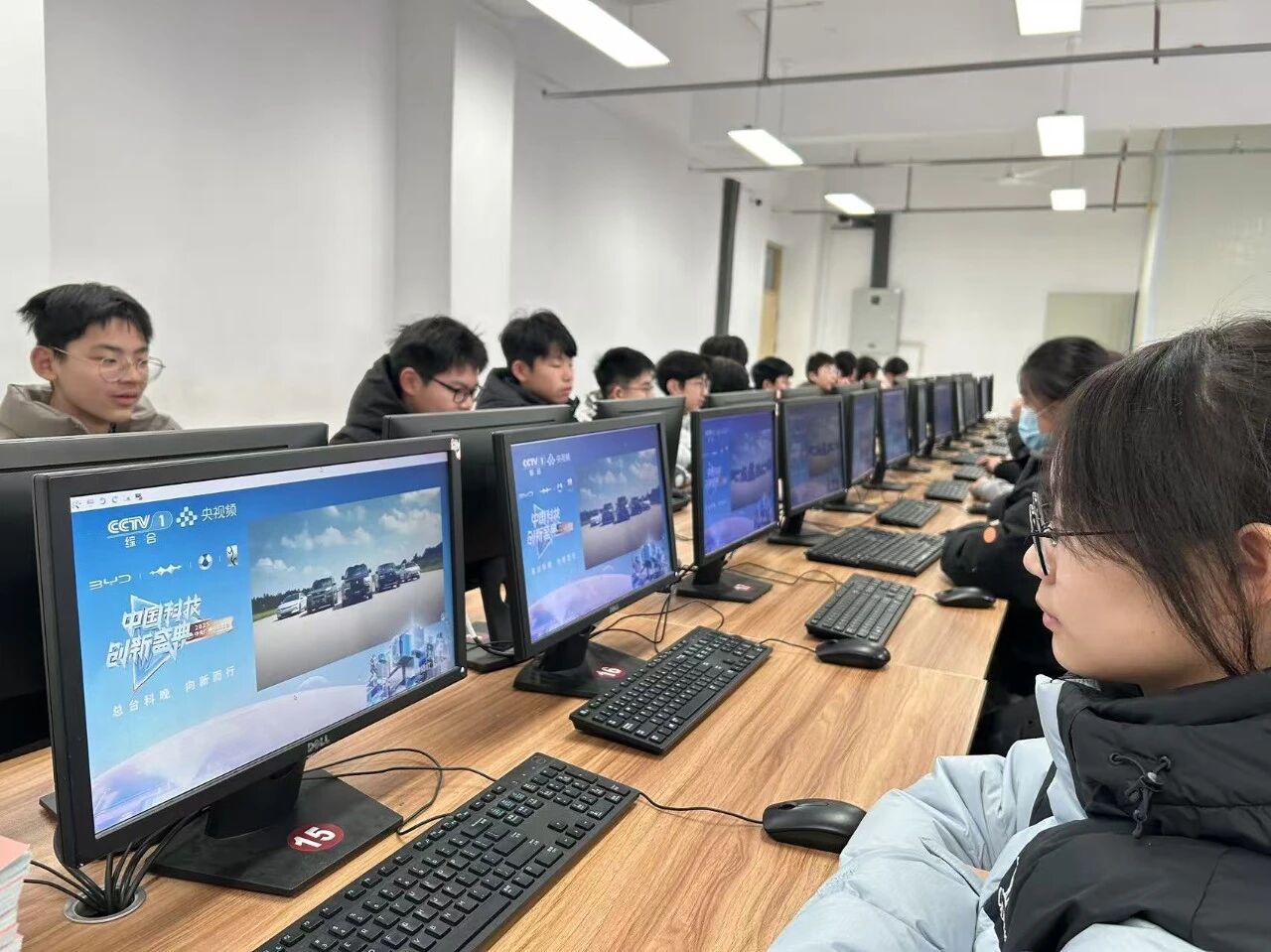 信息科技课堂上学生集中观看2025《中国科技创新盛典》