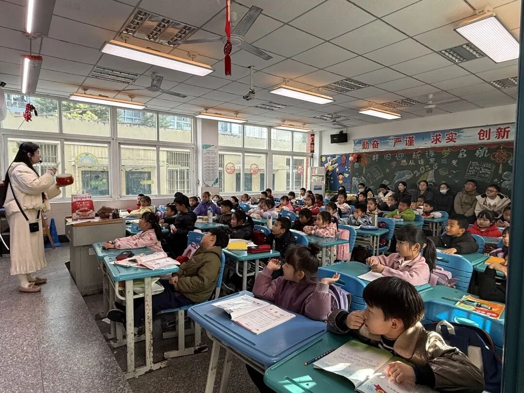 清晨,家长们有序进入校园,随晨检铃声步入孩子所在班级,开启沉浸式观摩之旅。课堂上,教师立足“985”育人体系的核心要求,将趣味互动与知识传授深度融合,打造高效灵动的育人课堂。语文课上,老师设计巧妙识字环节,化抽象为具体,让孩子们在趣味中掌握知识;数学课上,老师用彩色积木搭建“数字城堡”,引导孩子们在动手操作中理解加减法奥秘;美术课上,老师带领孩子们用色彩描绘水果世界,以美启智、以美润心;音乐课上,清脆的手鼓节拍响起,孩子们在律动中感受艺术魅力,教室里满是欢快的旋律与童真的笑意。生动的课堂不仅点燃了孩子们的学习热情,更让家长直观感受到学校“985”育人体系在日常教学中的落地生根。