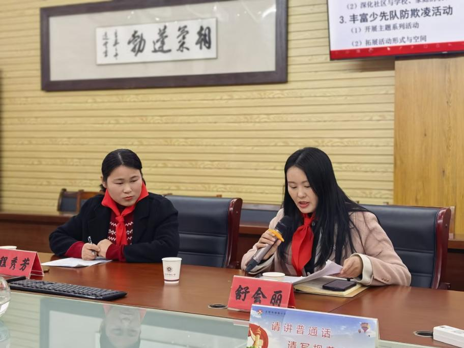 专家点评与指导环节,三位专家结合汇报内容与课题实际,提出了极具针对性与指导性的意见。戴厚文老师从少先队活动的专业性出发,强调课题研究需紧扣少先队政治启蒙与价值观引领的核心职能,将防欺凌教育融入爱国主义教育、集体主义教育等主题活动。沈来凤校长聚焦中期报告撰写的逻辑性与严谨性,帮助课题组成员梳理中期报告书中的逻辑问题,让报告的指向更明晰,后续活动的开展更具针对性。舒会丽老师则围绕课题成果转化与辐射推广提出建议,指出应形成可复制、可推广的防欺凌教育资源包与活动案例集,为更多学校提供参考借鉴。