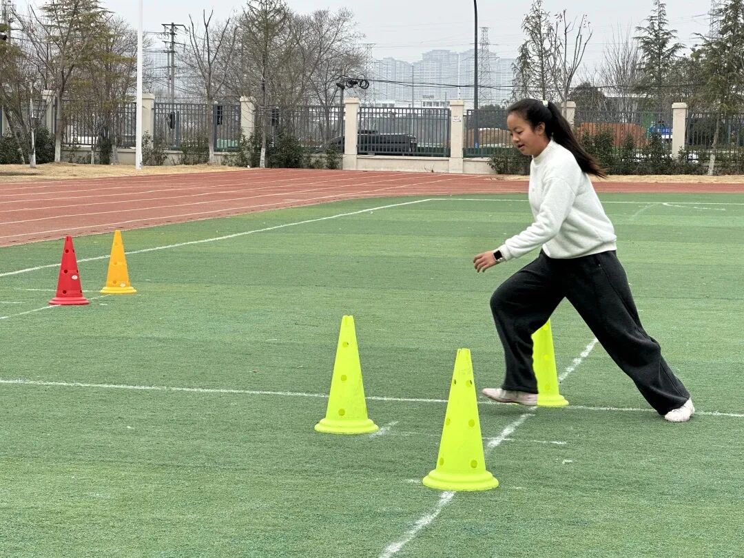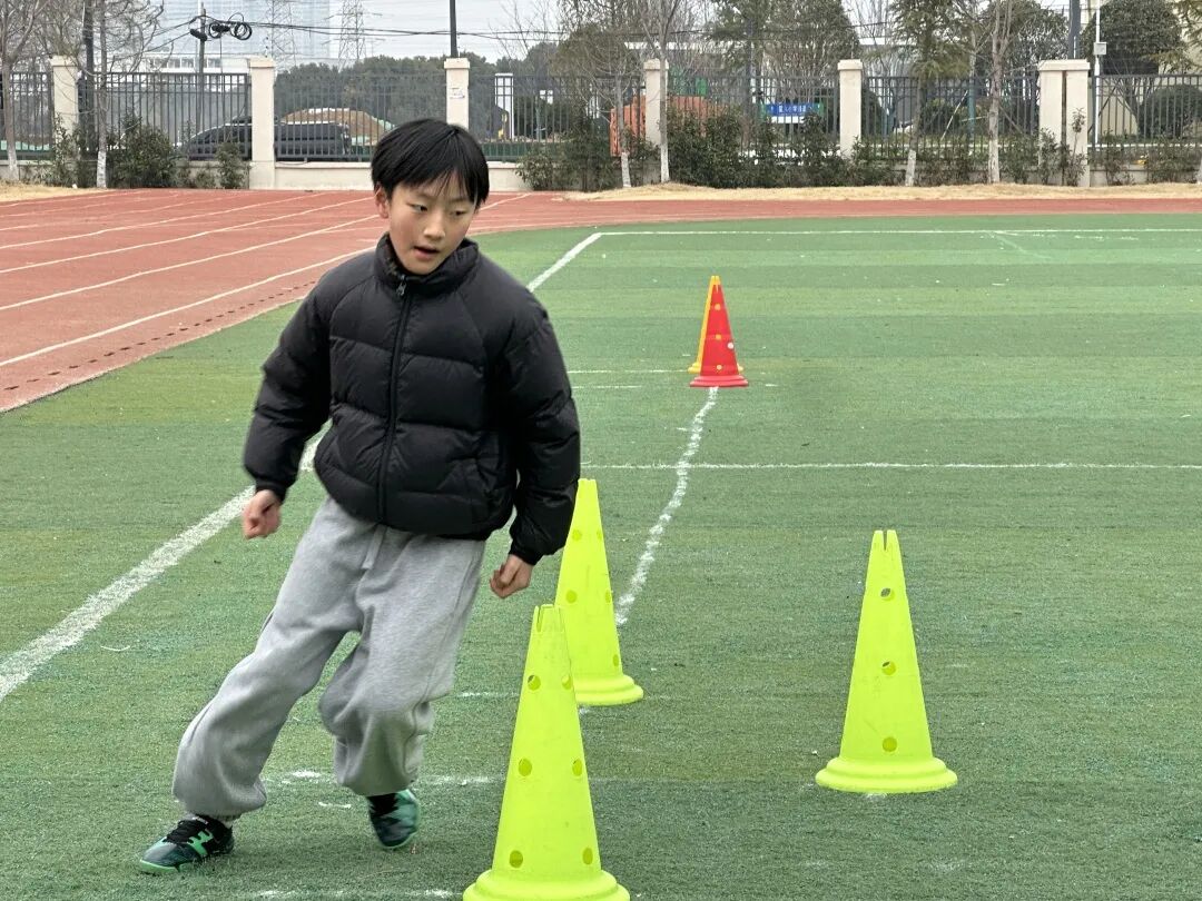 考核现场,学子们精神抖擞、奋勇争先。颠球时的稳稳控球、绕障碍运球的灵活穿梭、变向传球的精准到位、带球射门的果断有力、20米冲刺的风驰电掣,每一个动作都凝聚着一个学期的刻苦训练与不懈积累。值得关注的是,这些学生入学时大多为零基础,经过一个学期的系统训练便已熟练掌握脚内侧传接球、带球绕桩等基础技能,如今更是在专项素质与综合能力上实现较大的飞跃,充分彰显了特色班系统化培养的显著成效。
