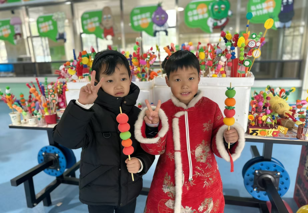 为什么过年要吃糖葫芦呢?在文化讲解环节,教师结合年俗故事,让孩子们了解这道传统小吃背后的吉祥寓意。从梁实秋笔下的北平记忆到如今的创意美食,从 “团团圆圆” 的形态寓意到 “福禄双全” 的美好祝愿,一串小小的糖葫芦,成了传统文化启蒙的鲜活教材。二年级的张益嘉说:“我要把这个送给奶奶,祝她新年有福气!” 孩子们把对家人的祝福,都藏进了这串亲手制作的 “甜蜜礼物” 里。