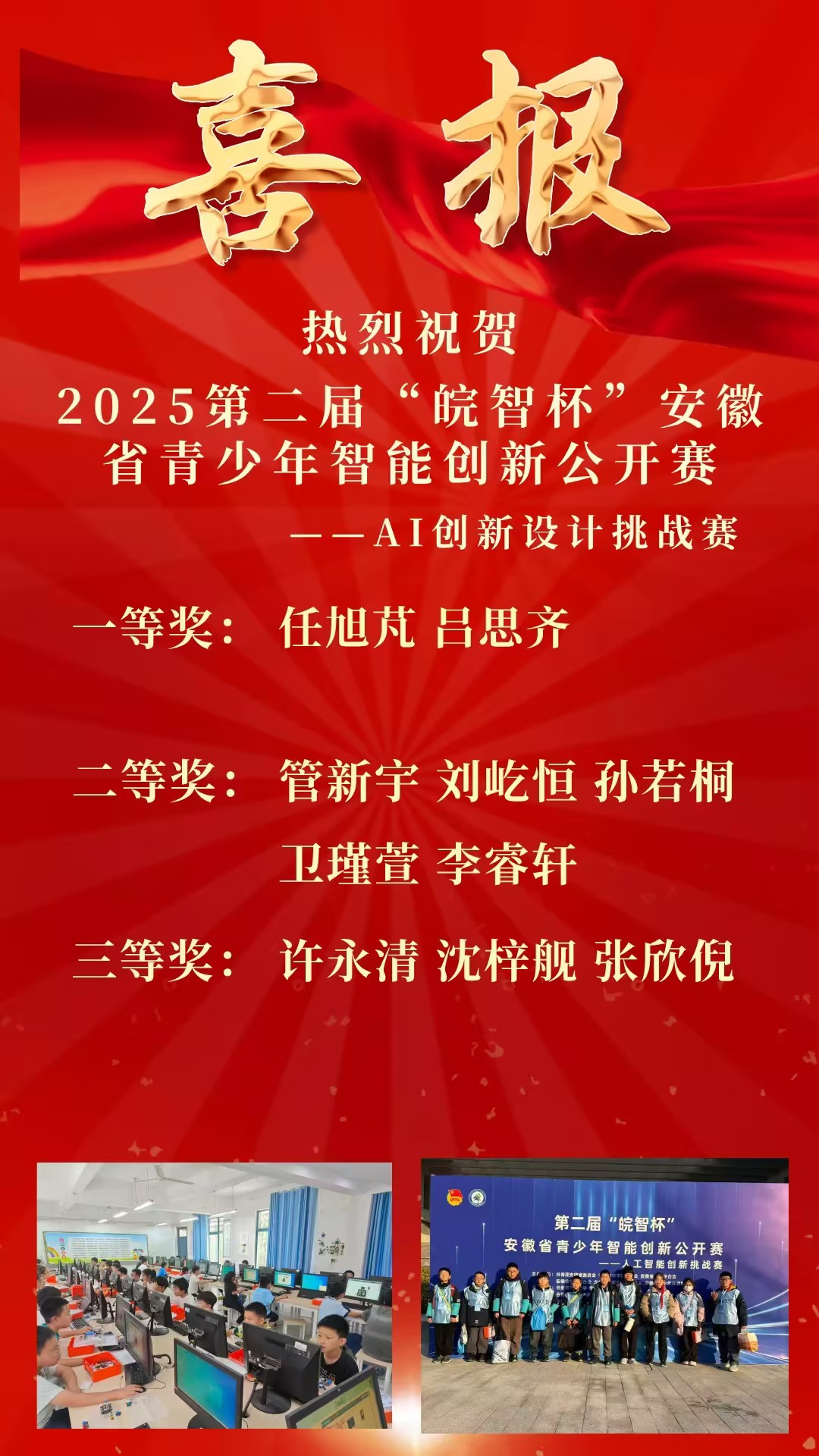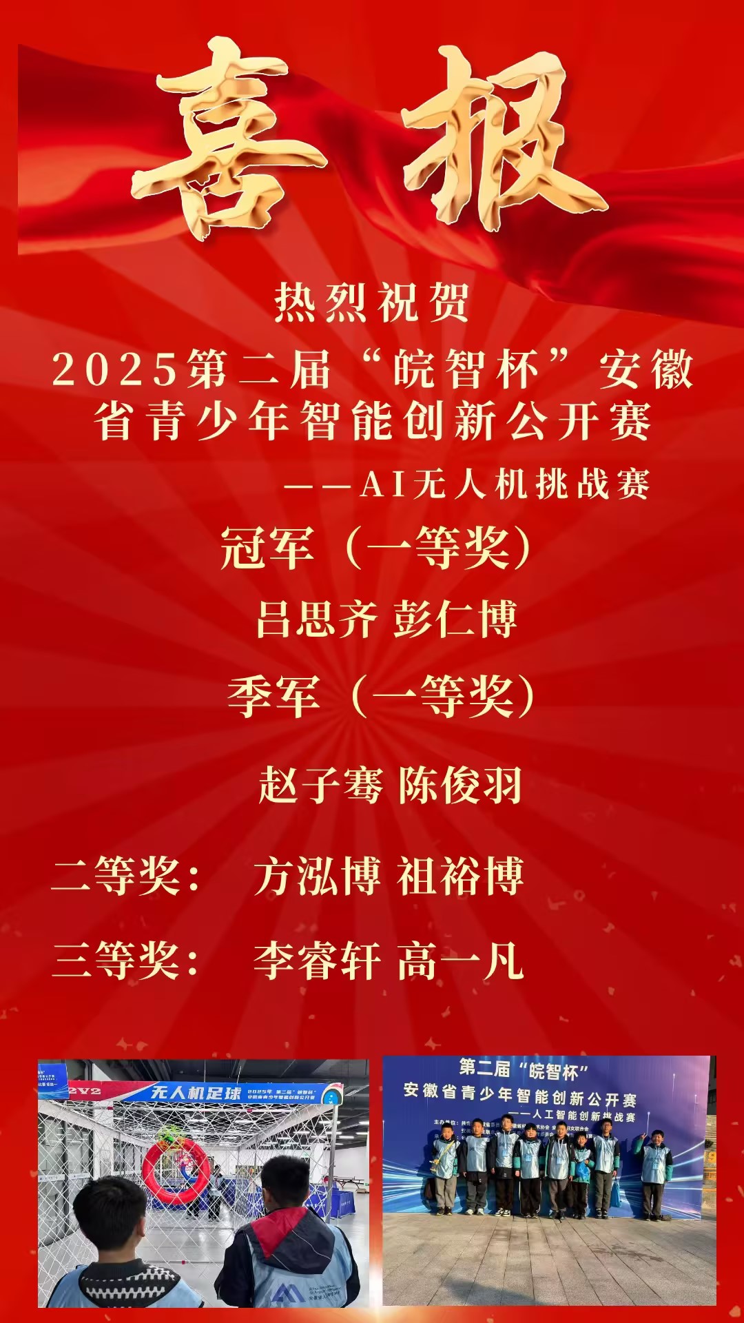 在2025第二届“皖智杯”安徽省青少年智能创新公开赛中,合肥市建平实验小学锦绣校区斩获佳绩!41名学子在AI信息算法、无人机、创新设计、机器人应用四大赛项中摘得荣誉,其中一等奖13人、二等奖18人、三等奖10人,学校获评“优秀组织单位”。
