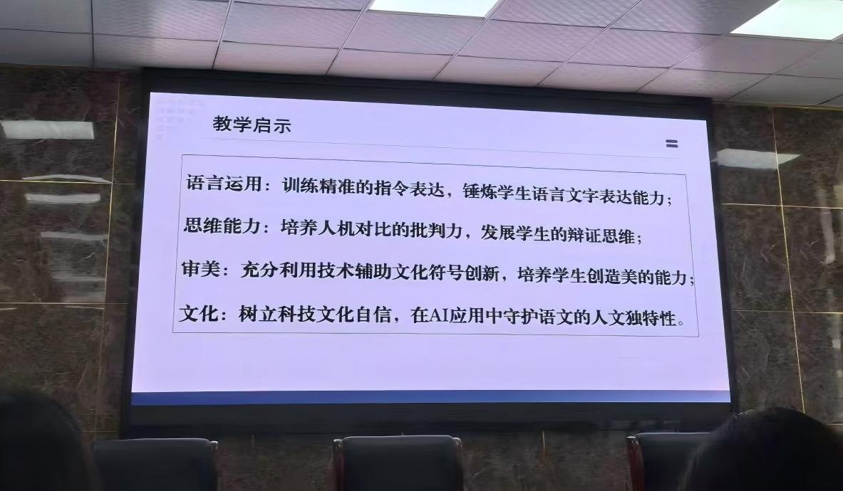 同时,研讨会中关于AI与语文教学融合的教学启示,更让教师们深受启发:在教学中要强化学生精准指令表达训练,培养人机对比的批判力与辩证思维;借助技术辅助文化符号创新,在AI应用中坚守语文的人文特性,助力学生树立科技文化自信。