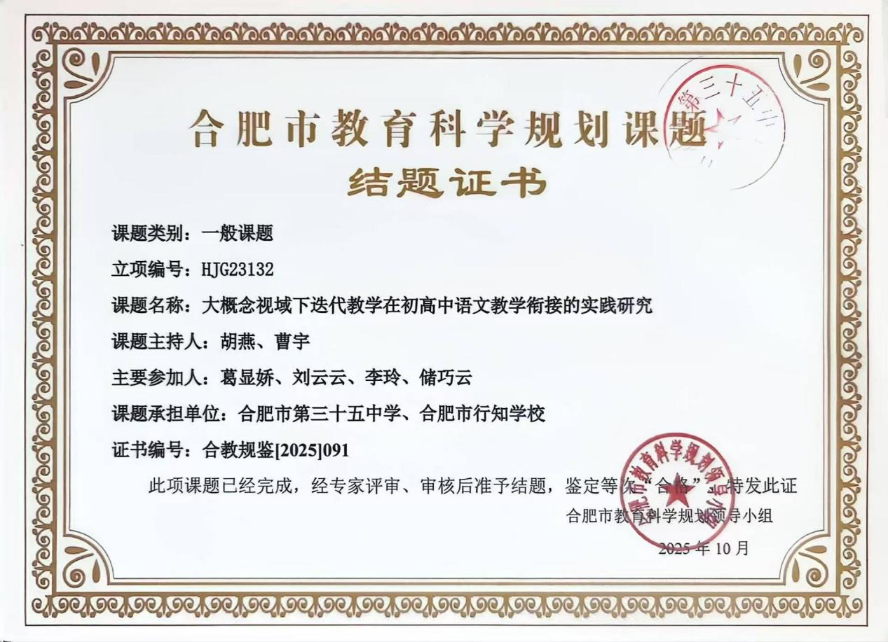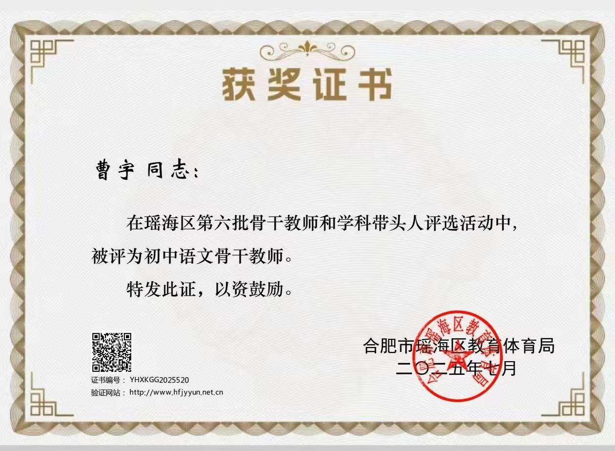 张漫漫老师则在瑶海区第十二届中小学、幼儿园教师暨第十届校级领导课堂教学评比中脱颖而出,荣获初中语文组二等奖,以赛促教、以赛促研,为组内教师的课堂教学创新提供了鲜活范例。