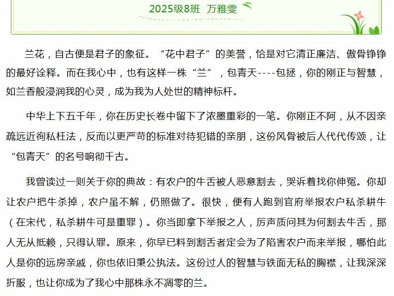 “兰花草杯”作文赛事:协办校首届“兰花草杯”作文比赛,全程统筹初赛命题、复赛评审等全流程工作,为学生搭建展示写作才华的优质平台,极大激发了学生的文学创作热情。