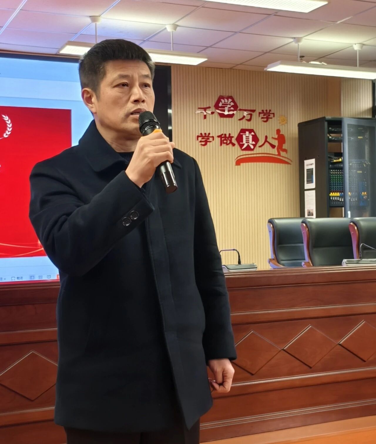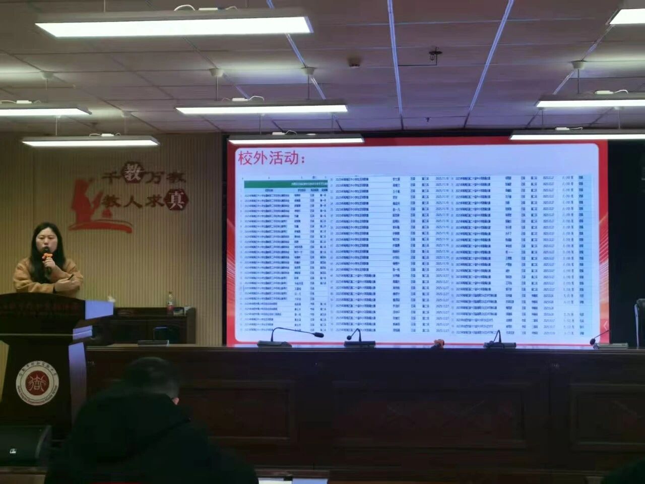 总务处负责人程俊盘点本学期校园基础设施建设成果:包括校内动物园“翎跃园”的启用、电子屏安装、校园电力升级、地面电动车车库的建成使用等,展望来年总务处将从推进资产管理数字化、校园服务智慧化、平安校园精准化三个方面开展工作。