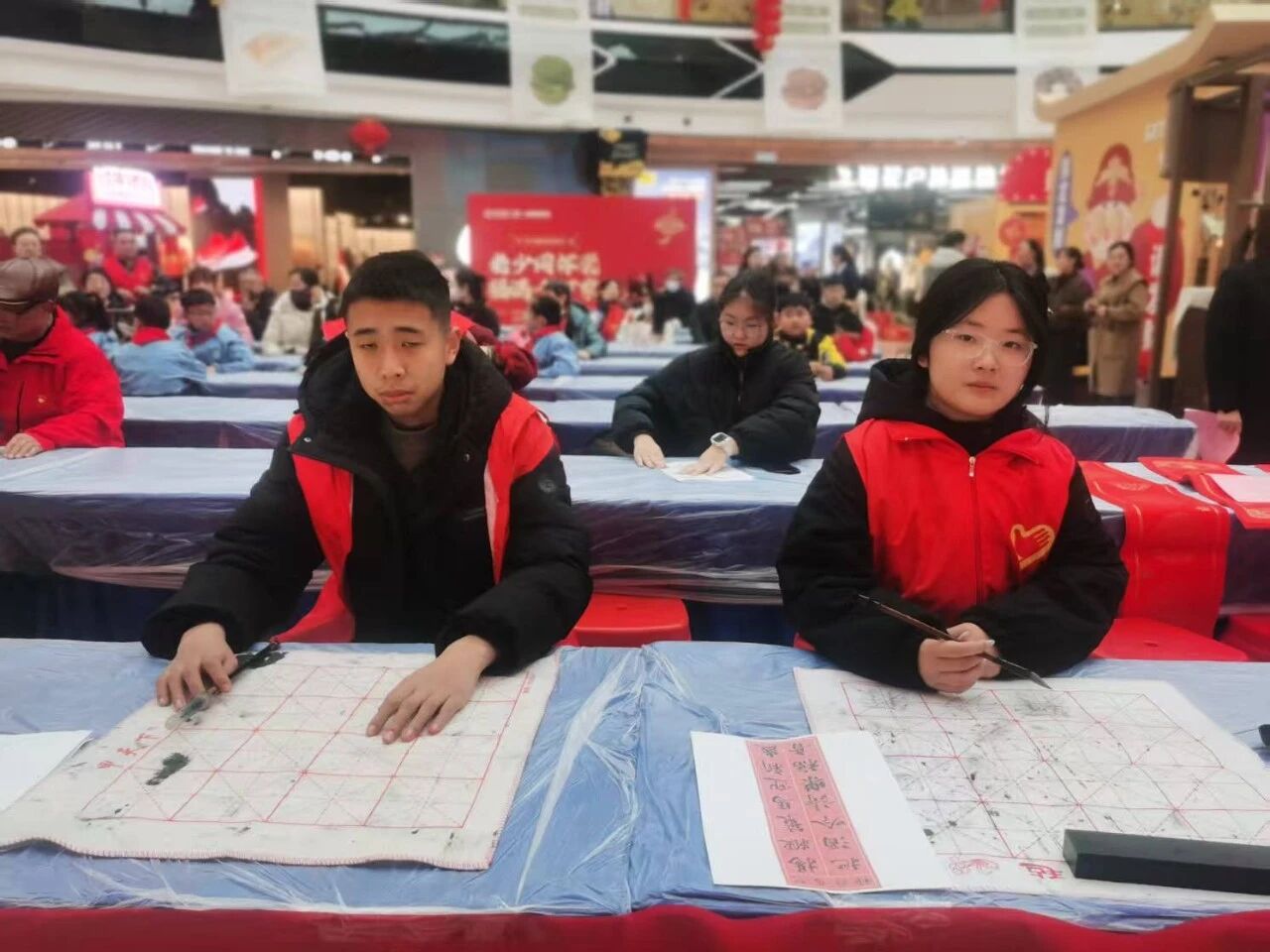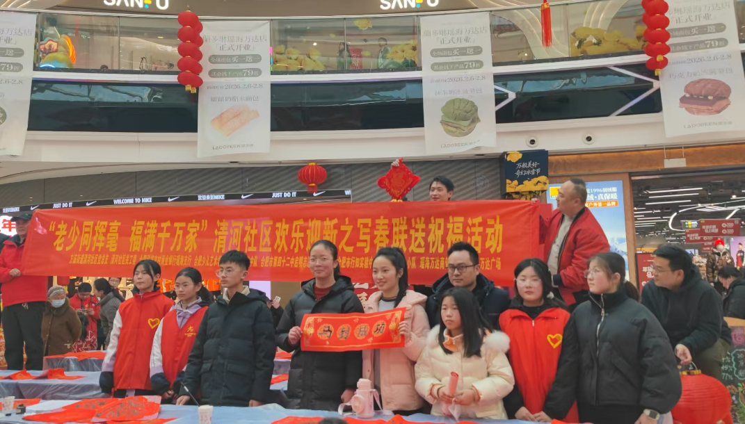 为深化党建带团建工作实效,弘扬中华优秀传统文化,营造喜庆祥和的新春氛围,2026年2月10日下午,合肥市行知实验中学师生积极参与到方庙街道清河社区党总支、清河社区关工委组织开展的“老少同挥毫,福满千万家”志愿服务活动。