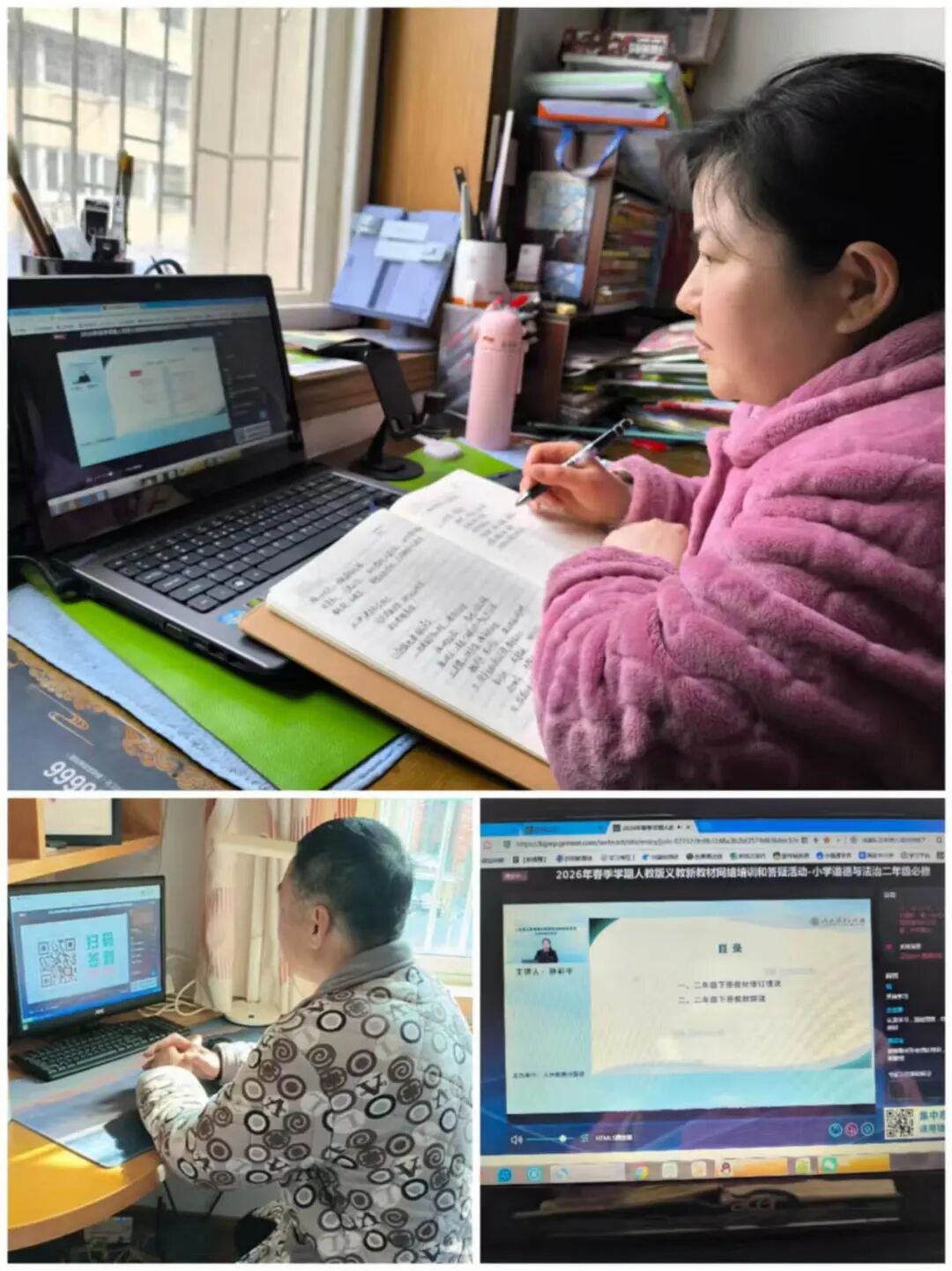 虽然是线上培训,但庐阳实小的老师们学习热情丝毫不减。大家或端坐电脑前,或手持手机,一边聆听专家讲解,一边认真记录。从“在改错中成长”的批注,到“从现在做起,靠实干实现梦想”的心得,再到“勤俭节约、诚信做人”的要点,每一页笔记都凝聚着老师们的思考与收获。参训教师们结合自身教学经验,对照新教材的变化,深入理解其育人价值与教学逻辑,为新学期精准施教筑牢了坚实基础。