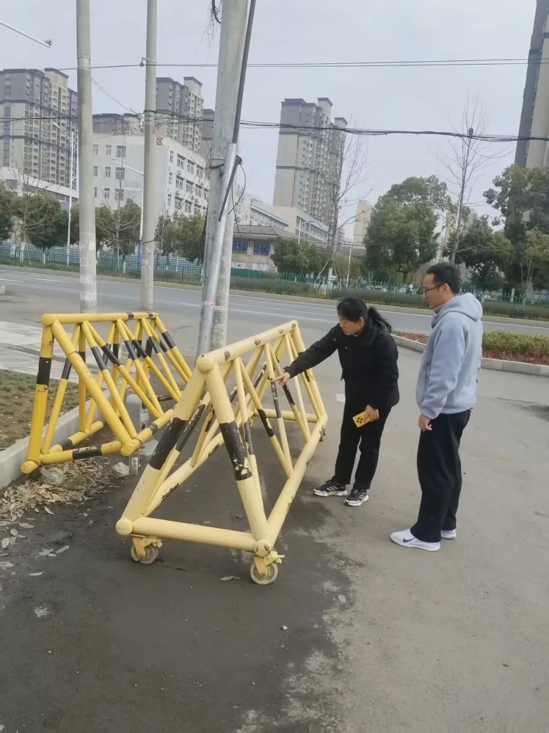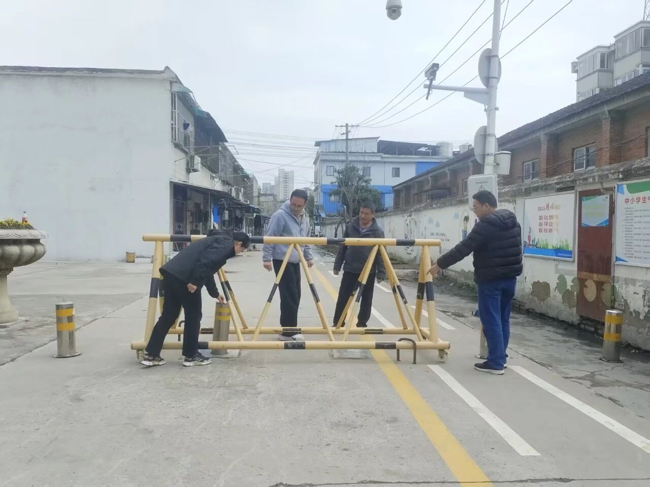 检查组先后深入教学楼、保安室、校门口、食堂、操场等重点场所,开展全方位、立体化安全“体检”。在校园门口,细致检查拒马、防撞桩等防护设施的完好性,核查保安八大件配备及使用情况;在配电房和教学楼内,重点排查配电柜运行状态、电气线路老化破损情况,对发现的老化线路逐一标记、登记,明确整改标准;在教室,仔细检查照明设备、门窗把手的完好情况,保障师生日常学习生活安全;在食堂,核查各类设施设备运行状况,筑牢食品安全防线;在操场,全面检查跑道、塑草的完好度,及时排查学生活动过程中的安全隐患。此次排查共发现二楼卫生间洗手池漏水、操场大屏破损、部分教室把手损坏等问题,检查组当场明确整改责任主体、整改时限,要求限期整改到位,并安排专人跟踪督办、复查验收,确保隐患闭环管理、彻底清零。