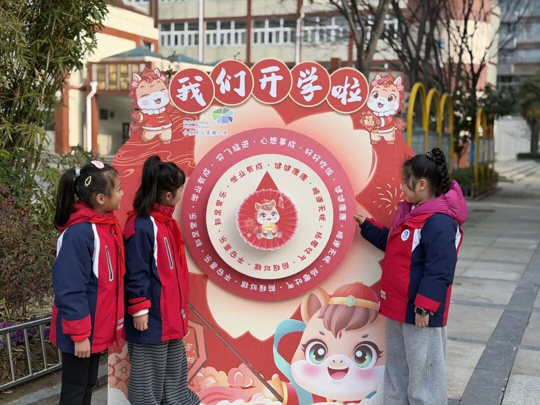 南校区“我们开学了·马转心愿签”同样热闹非凡。转动圆盘,转出心愿,孩子们在新学期的第一天便收获了满满的惊喜与祝福。灯谜区,同学们或凝神思考,或低声讨论,智慧的种子在春风中悄然萌芽。