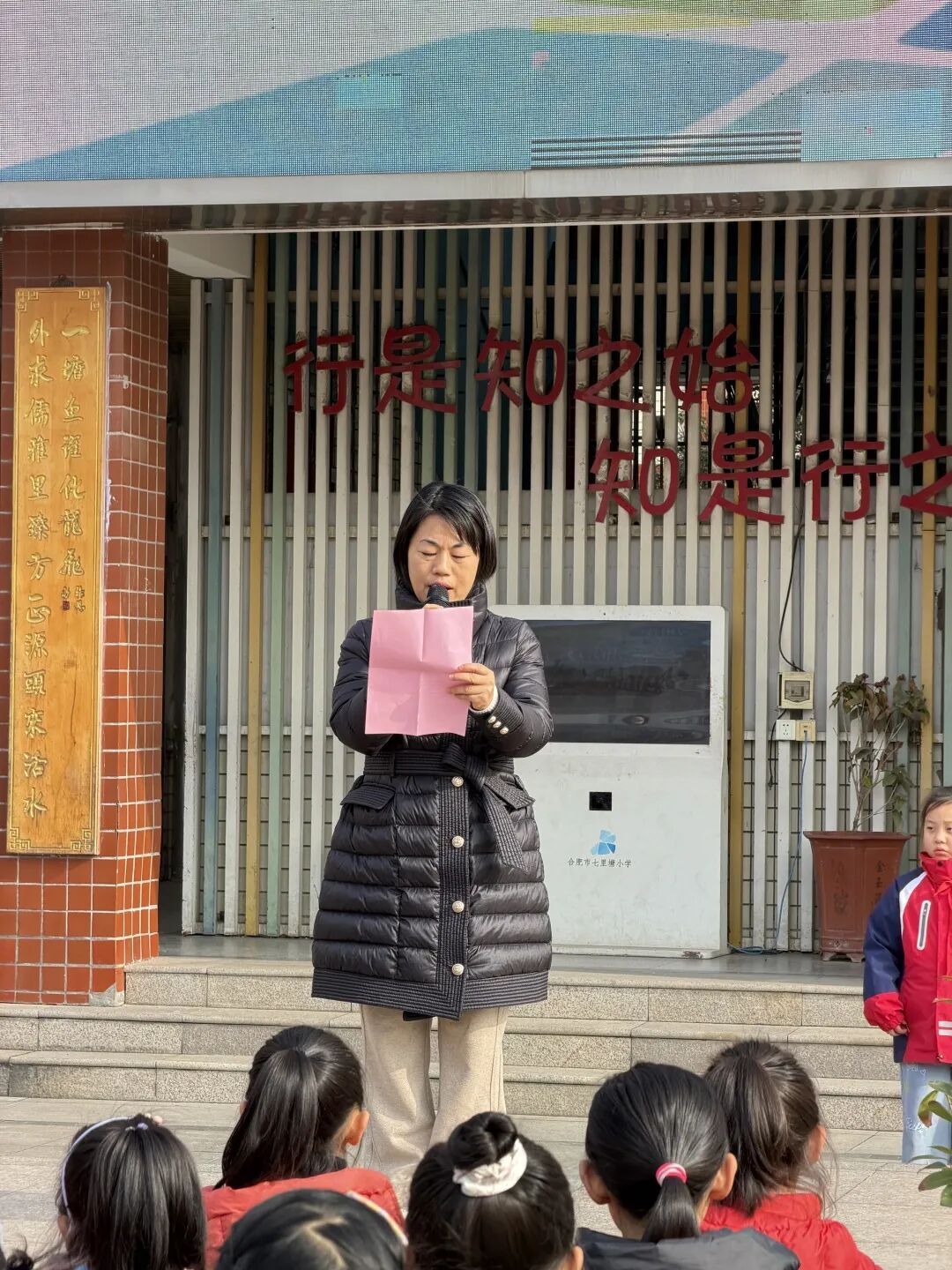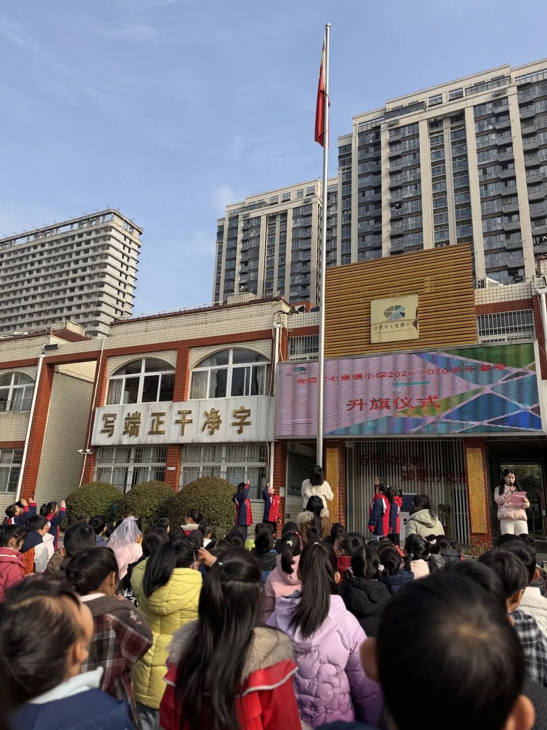 在庄严的国旗下,张良嵩书记发表了热情洋溢的讲话。他以“谜”启新岁、策马赴新程为题,向全体师生致以新春的祝福与新学期的期望。他希望同学们做脚踏实地的“千里马”,树立目标、勤学善思;做传承经典的“小使者”,恪守礼仪、团结友善;做奋勇拼搏的“追梦人”,以龙马精神直面挑战,向阳生长。他也寄语老师们守教育初心、秉育人匠心,与孩子们一同奔赴新程,让七里塘小学的教育沃土绽放更多精彩。