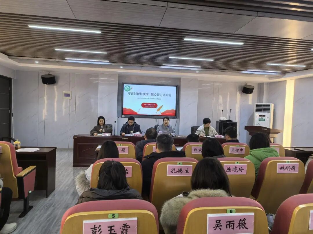 会议伊始,党支部书记、校长叶佳发表新年致辞。她向全体教职工致以新春祝福,对假期坚守岗位的教职工表示感谢,并结合数智时代发展,深刻分析当前教育面临的新形势与新要求。叶校长强调,时代在变,教育初心不能变,全体教职工要坚守师德、育人、安全三条底线,立足岗位、担当作为,做有情怀、有本领、有底线的教育者。同时,她就新学期收心归位、课程落实、体育锻炼、作业管理、学生关爱、规范收费及未成年人网络信息保护等重点工作进行部署,号召全体教职工凝心聚力、实干笃行,共同推动学校新学期各项工作再上新台阶。