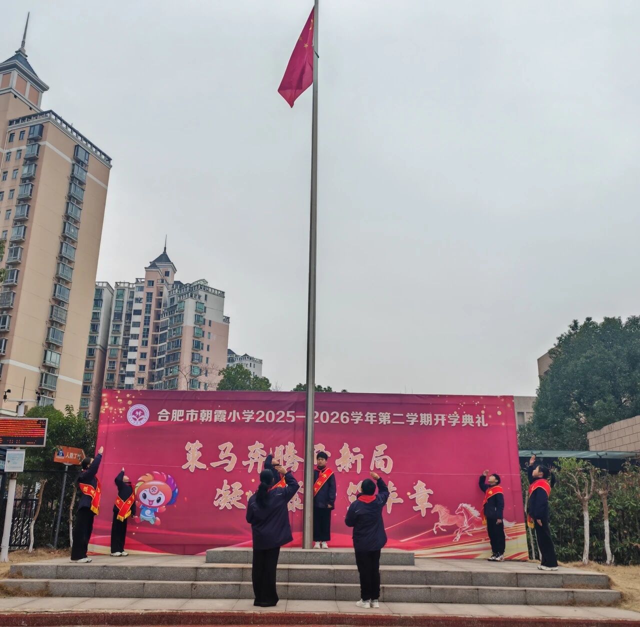 春启新程,逐梦芳华。2026年3月5日上午9时,合肥市朝霞小学全体师生齐聚学校操场,隆重举行2025—2026学年第二学期开学典礼。本次典礼以“策马奔腾开新局,凝心聚力筑华章”为主题,为新学期开启崭新篇章。