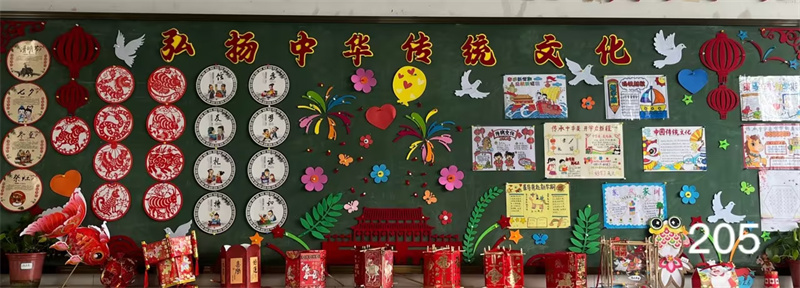 在一二年级的教室里,传统文化的魅力扑面而来。同学们以稚嫩的笔触,描绘出传统节日、非遗文化等元素,书写着经典诗词、传统美德小故事,一笔一画间,尽显对中华优秀传统文化的喜爱与传承。