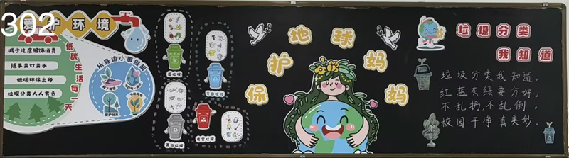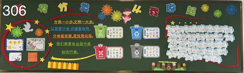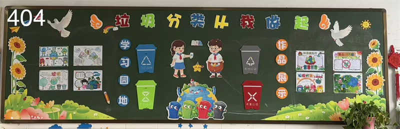 三四年级的黑板报则充满了绿色环保的活力。同学们围绕“绿色开学季 分类我先行”主题,精心绘制环保漫画、设计垃圾分类指南,用生动形象的画面普及垃圾分类知识,呼吁大家节约资源、低碳生活、爱护环境。