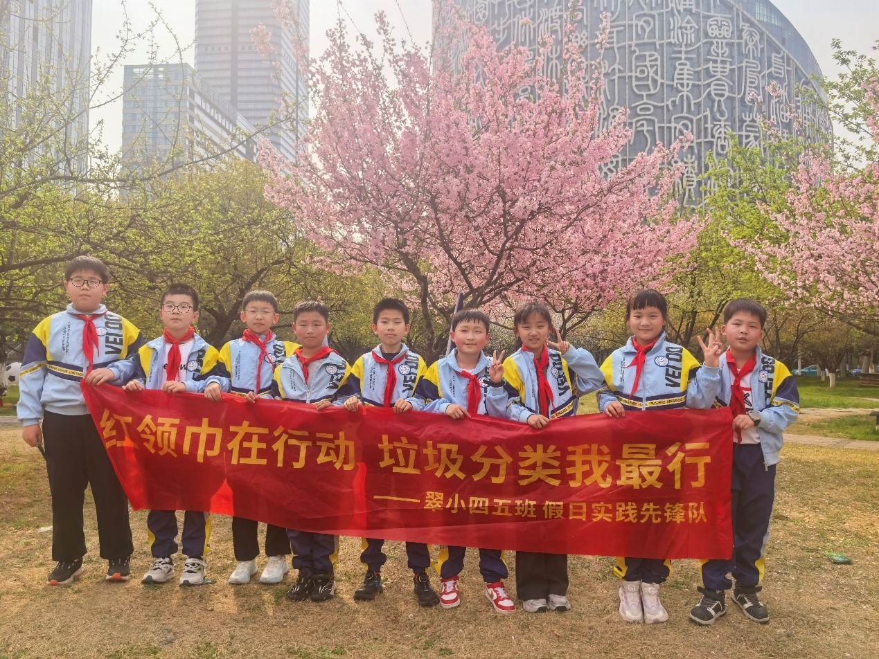 为践行生态文明理念,引导少先队员争做环保小卫士,3月29日,合肥市翠庭园小学四(5)班假日实践先锋队走进绿轴公园,开展“红领巾在行动,垃圾分类我最行”主题小队实践活动。