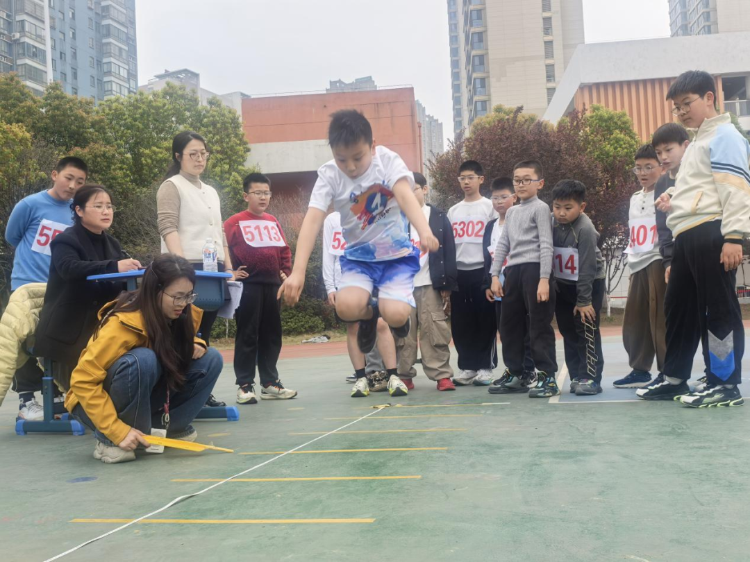 田赛场上,实心球项目里,同学们屈膝后仰、奋力一掷,沉甸甸的球在空中划出有力弧线;垒球赛区,小选手们凝神发力,小小垒球带着梦想飞向远方;立定跳远场地,大家蹬地腾空、轻盈落地,一次次挑战自我,跳出属于自己的最佳成绩。