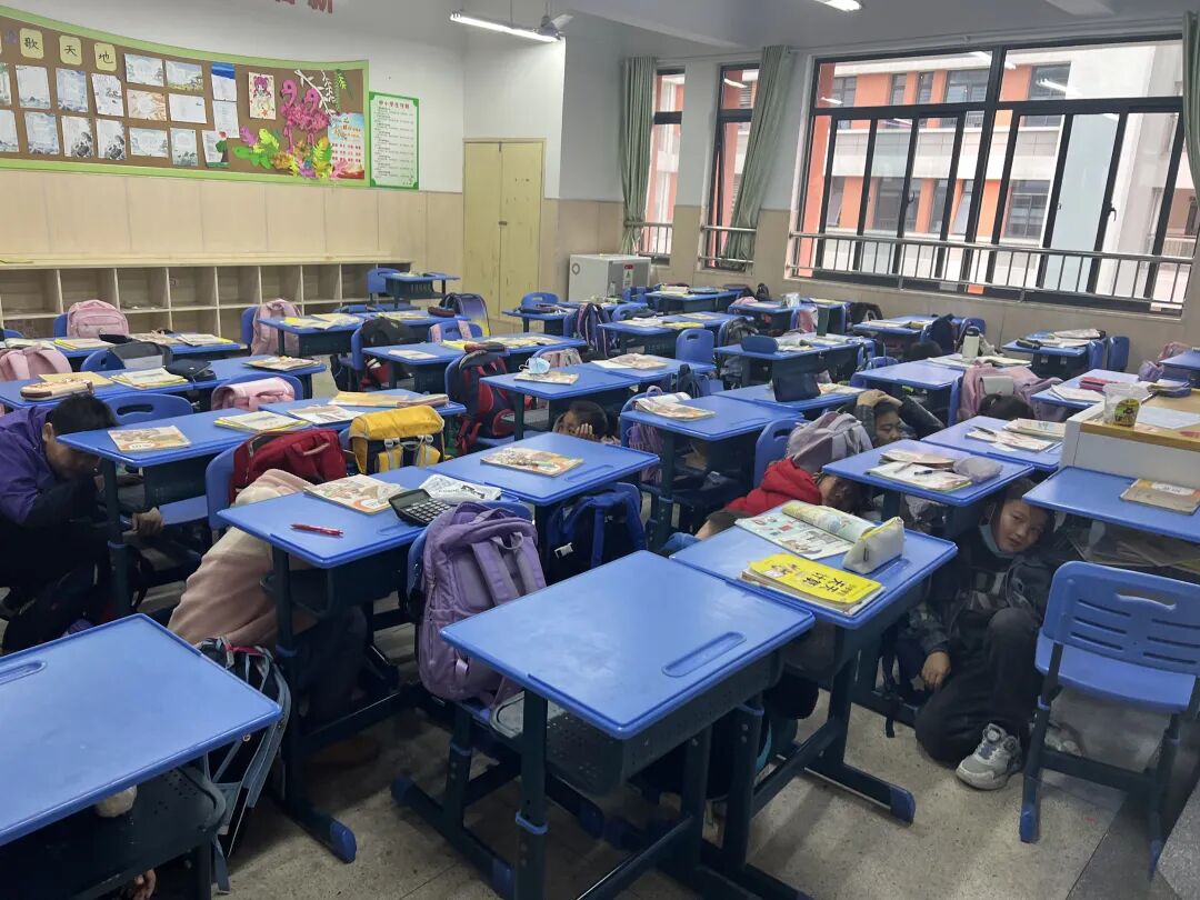 在叶佳校长、侯彦君副校长、王健中主任等现场负责人的统筹协调下,全校师生全部安全撤离至操场指定区域,无一人遗漏、无一人受伤,充分展现了良好的应急素养与组织纪律性。