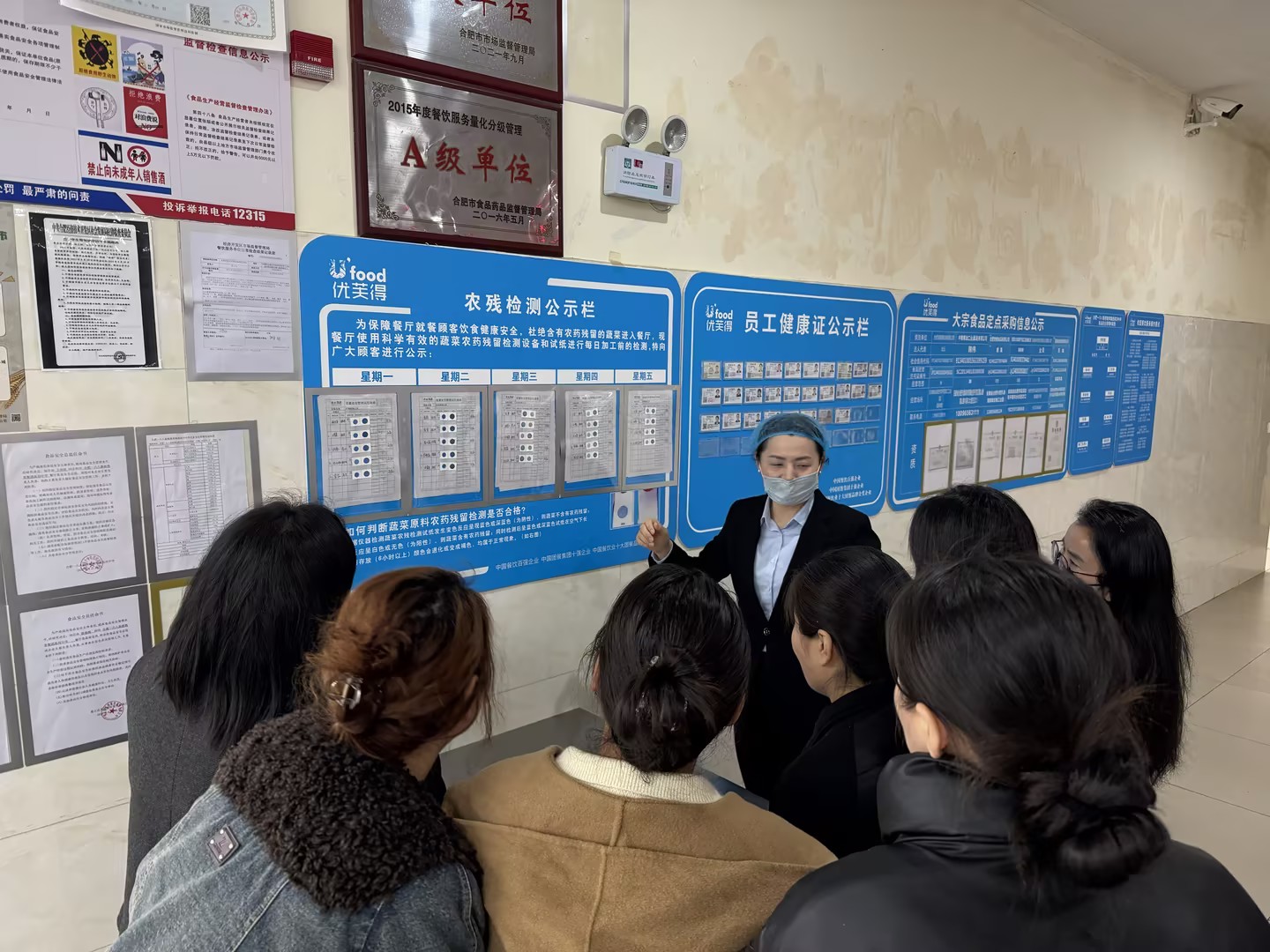 会议结束后家长们在苏双进主任的带领下,实地参观食堂后厨。从食材储存区、粗加工区、切配区到烹饪区、备餐区,家长们逐一查看,详细了解每一道工序的操作规范。干净整洁的环境、分类有序的食材、严格的留样制度,赢得了家长的连连称赞。