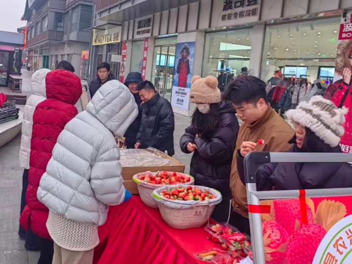 在太和县翰林广场上,胡总镇薄梨村和魏店村设立的展台展台上,草莓鲜艳欲滴,吸引消费者驻足品尝、咨询。薄梨村村书记刘祥招呼顾客边介绍:”我们采用生态种植模式,严格控制化肥农药使用,种出的草莓色泽好、糖度高、口感佳,欢迎大家品尝。”