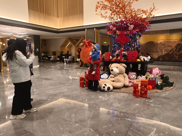 走进镇上的酒店,浓厚的年味扑面而来。希尔顿花园酒店大厅内,红灯笼与喜庆装饰相映成趣,引得游客刚进门便纷纷举起手机定格美景。漫心酒店则精准对接低温天气下的游客需求,为下山游客备好一杯杯热姜茶,稳稳递到冻得微红的手中。“正好需要,太及时了!”一位年轻游客捧着热茶由衷感叹。这份周到,在希尔顿欢朋酒店化作了满满的诚意:特色黄山烧饼、精致伴手礼,乃至深夜的热乎夜宵,都为游客的旅程增添了不少意外惊喜。山屿溪爱琴海城堡酒店的入住伴手礼,更让许多游客直呼“像回家一样亲切”。